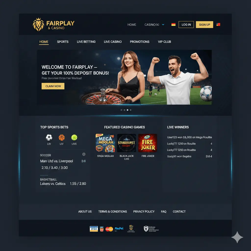 Fairplay.com has received favourable reviews from customers all across the world. Fairplay offers an easy-to-use interface and is available in different languages. All sports and the in-play betting section are easily accessible through the primary navigation menu, which is located at the top of the page.
